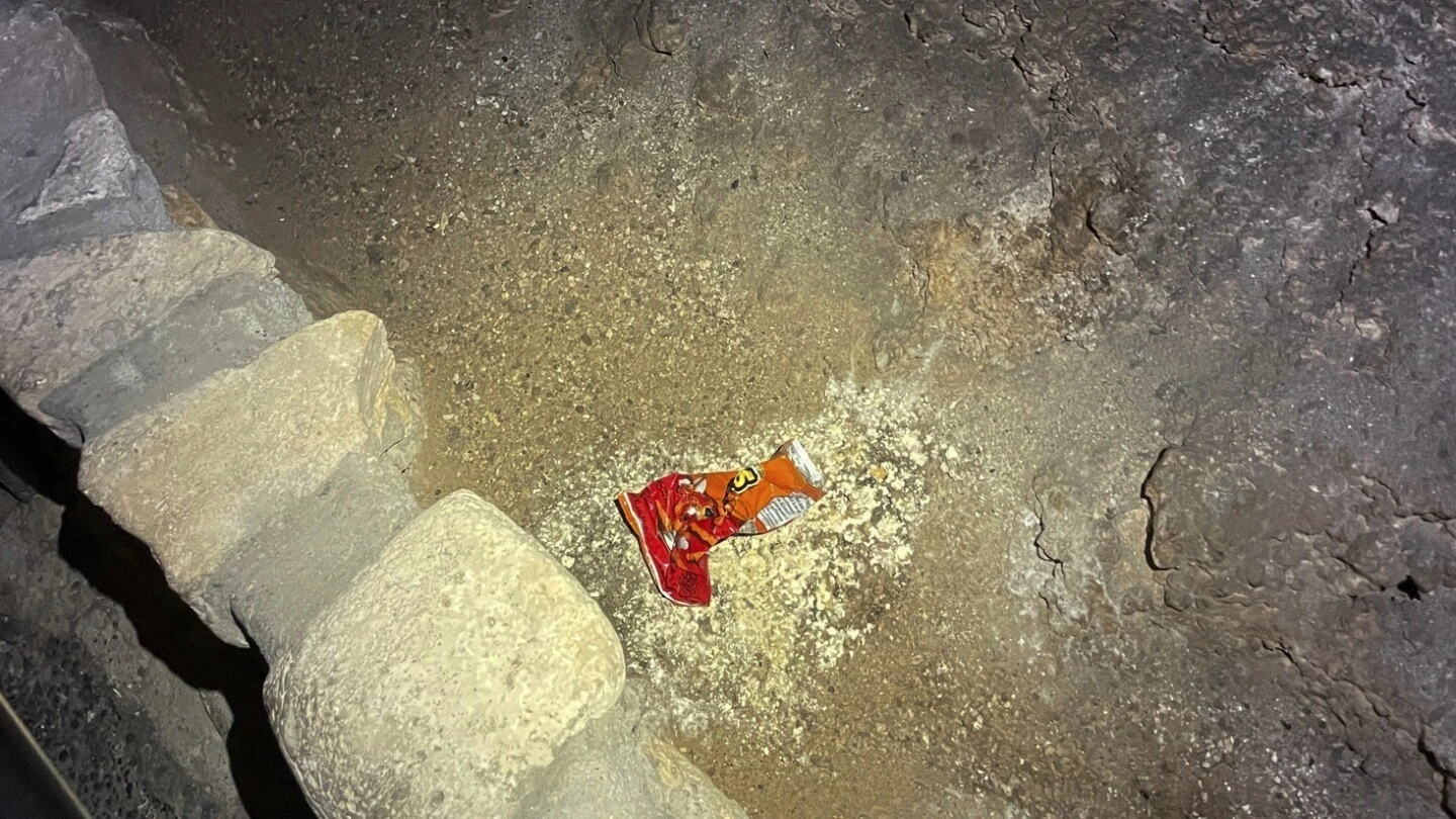 "The bag could have been there a day or two or maybe just hours, but those salty morsels of processed corn made soft by thick humidity triggered the growth of mold on the cavern floor and on nearby cave formations.