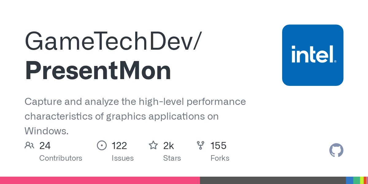 GameTechDev/PresentMon: Capture and analyze the high-level performance characteristics of graphics applications on Windows. (by Intel)
